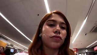 Cute teenie babe get facial after blowjob and rock hard pounding li