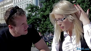 Fucking Blonde Girlfriend And Spunking On Her Glasses
