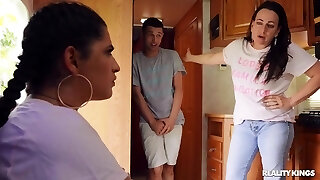 Gorgeous Brunette With Big Boobs, Belinha Barracho Got Spit- Roasted The Other Day And Liked It