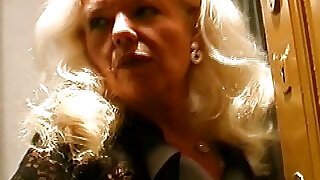 Old and busty German grandmother in stockings enjoys making a spunk-pump cum