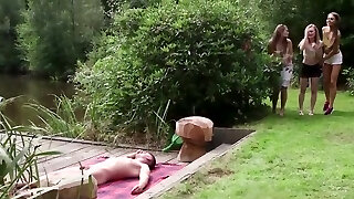 CFNM outdoor BJ British ladies suck cock in gang blowjob