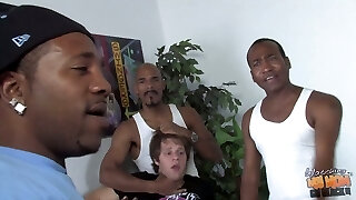 Check out this cougar busy in an interracial gang-bang that leaves her one messy bitch