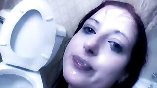 A bad girl gets pounded in the ass in a locker room bathroom