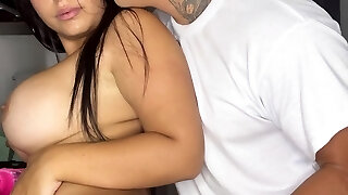 Big Tits Big Ass Brazilian Maid rides The Big Black Cock of her Landlord hard for a Facial Cumshot Jizz Flow on her Mouth and Face